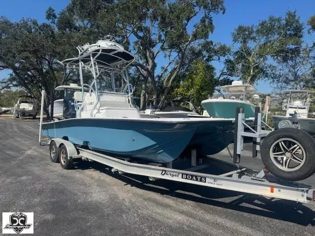 2016 Dargel Kat250 HDX powered with a Yamaha 250 V MAX with only 580 hours! Equipped with electronic shift and upper station this boat is ready to attack the flats and scout for tailing redfish! Equipped with a Garmin 16" MFD and dual controls this boat is ready to fish! Call today to see this one! See the following standard features from the Dargel website.