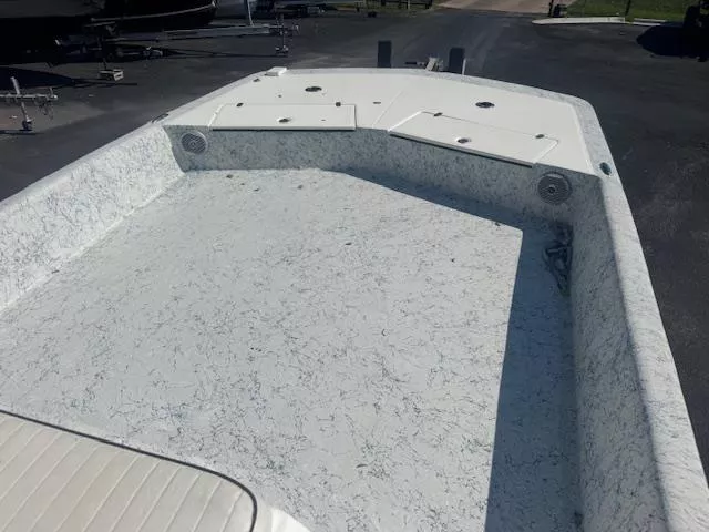 - Molded, Textured Front Decks with Storage and Fiberglass hatch lids, with Stainless Steel Latches